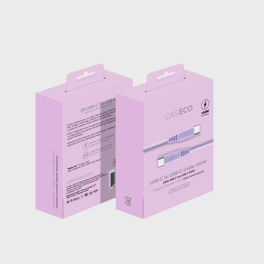 Caseco | Fast Charging Cable USB-C to USB-C Cable 2M/6.6 FT - Purple | C0515-11