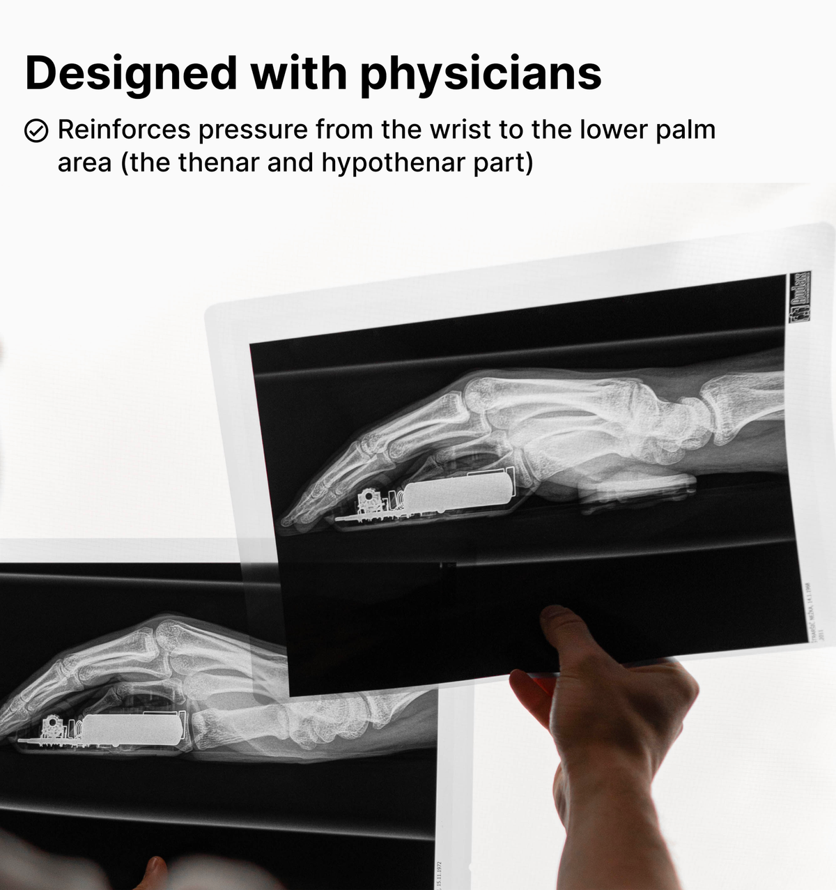 • Design with Experts - With a team of medical experts specialising in reconstructive surgery, we found the ideal contoured ergonomic shape for Carpio 2.0 that reduces harmful extensions of the wrist