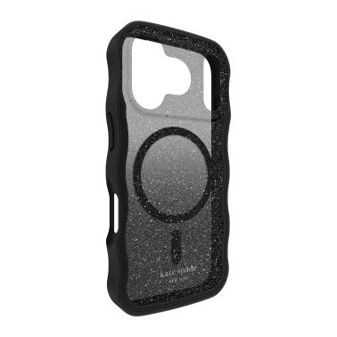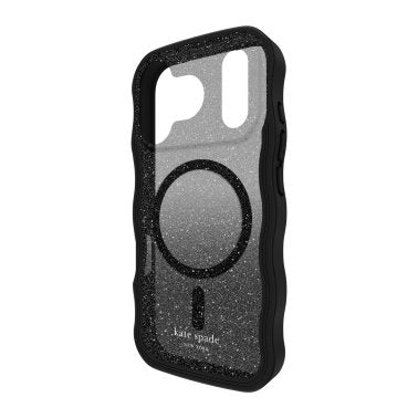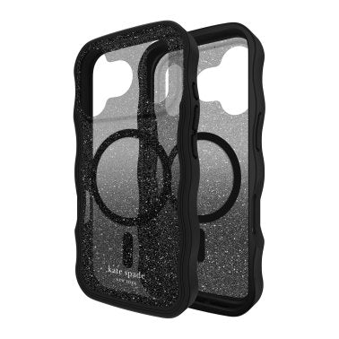 The kate spade new york Wavy MagSafe Phone Case adds a fun touch to your mirror selfies with a unique wavy design and black glitter ombré! This phone case is made to keep up with your daily to-do list thanks to a 10-foot drop protection, while built-in magnets let you wirelessly charge and accessorize in a snap.
