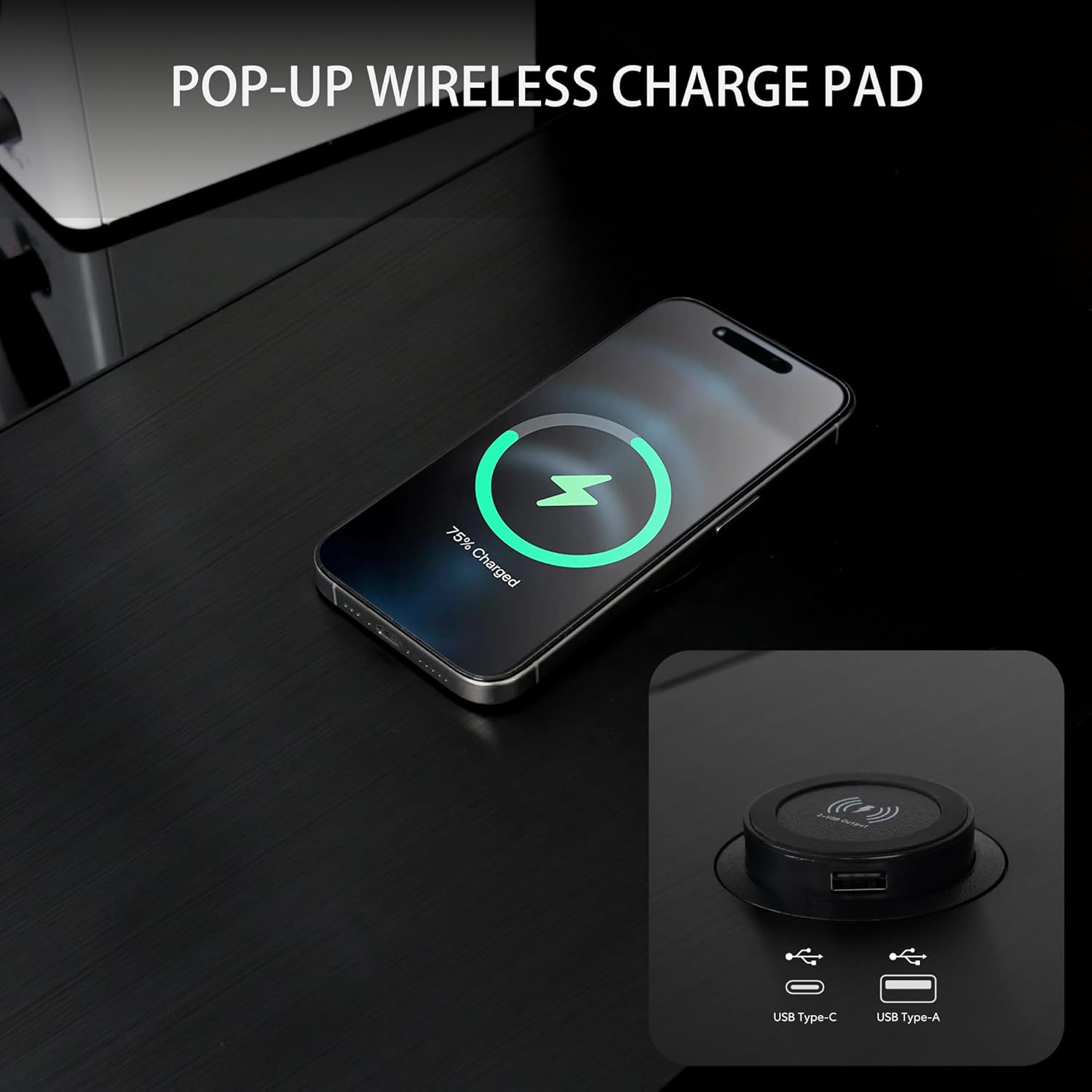 • Wireless Charging Convenience: Equipped with a wireless charging pad, allowing you to power your devices effortlessly without the need for extra cables.