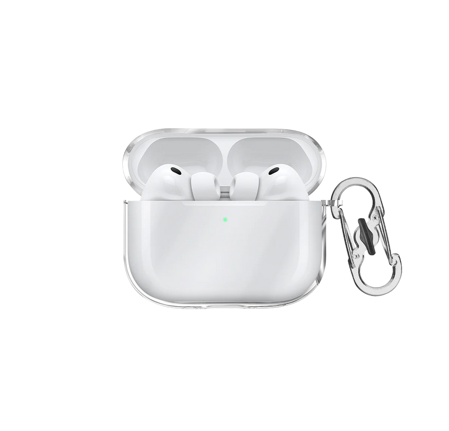 • Durable clear hard shell case with metal carabiner for AirPods Pro 3