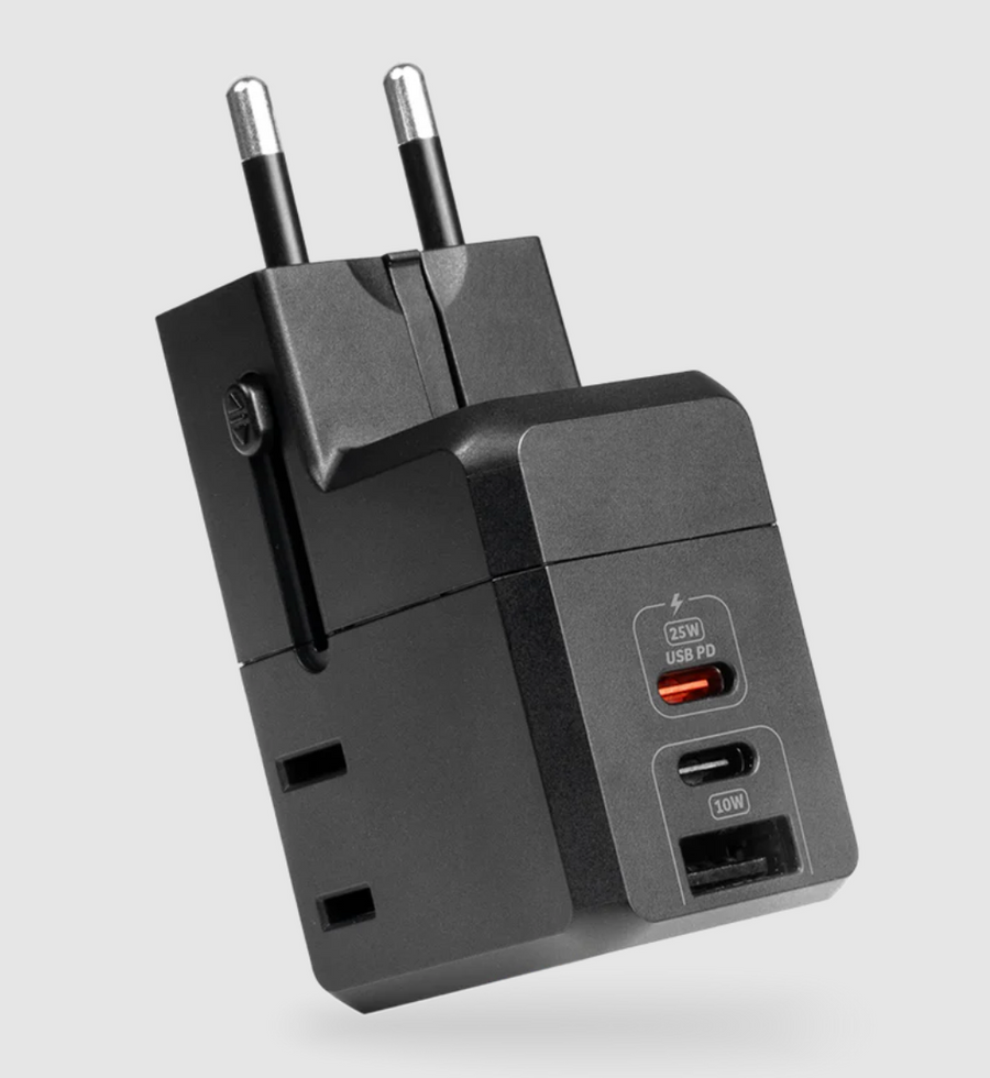 The LOGiiX World Traveler LITE II is an improvement on our most compact and best-selling travel adapter yet! The innovative and intuitive retracting prong design allows this travel adapter to maintain an ultra-compact design when not in use. The World Traveler LITE ll features a pass through AC plug-in along with built-in USB-A & USB Type-C ports enabling you to 3 devices simultaneously. Charge your smartphone up to 72% in just 45mins with the USB Type-C Power Delivery port. This universal travel adapter allows you to charge your devices in more than 150 countries.