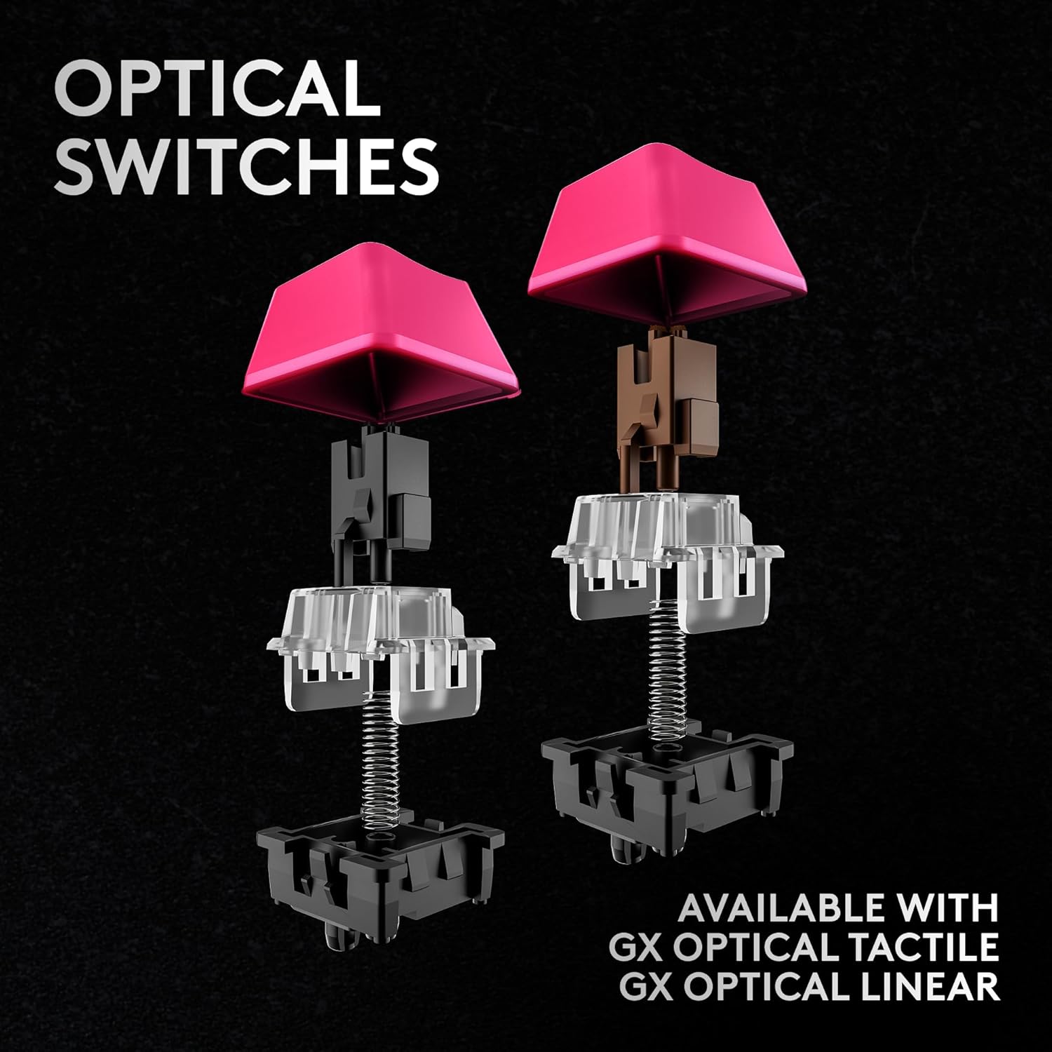 Play your way with dual-shot PBT keycaps and two GX optical switch options: tactile or linear. Seamlessly connect your wireless mechanical keyboard using Bluetooth or USB, or unleash speed and reliability with the trusted performance of LIGHTSPEED wireless. Win in style with LIGHTSYNC customizable RGB and 3 keyboard colorways: Black, White or Pink. Compact control. Zero compromises.