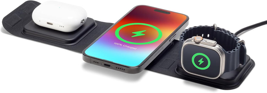The 3-in-1 Wireless Charging Stand is Qi2-certified and MagSafe-compatible. Its integrated cable coils up to fit neatly inside the base. Take the hassle of cable clutter out of charging.