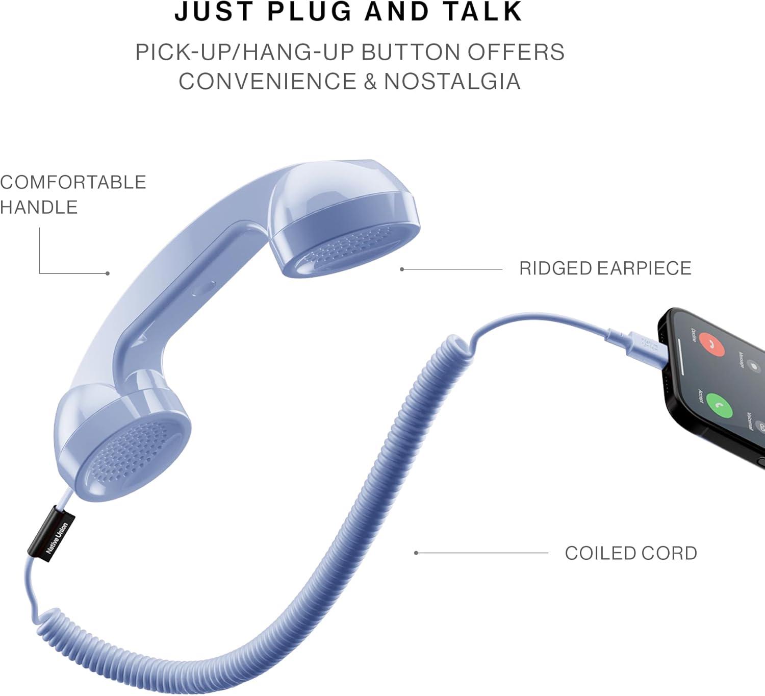 Native Union Pop Phone – Retro Telephone Handset with Microphone and Speaker – USB-C Compatible with iPhones, iPads, laptops, tablets, Samsung S24, Flip 6, Fold 6 – For Hybrid Working, Work From Home, Phone Calls, Video Conferences, Online Meetings