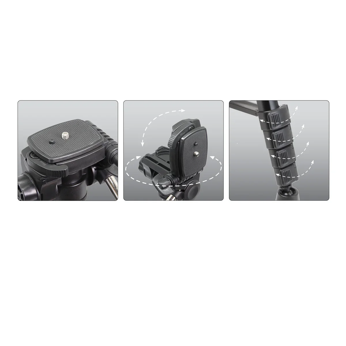 • 5-Section aluminum hybrid tripod with quick release plate.