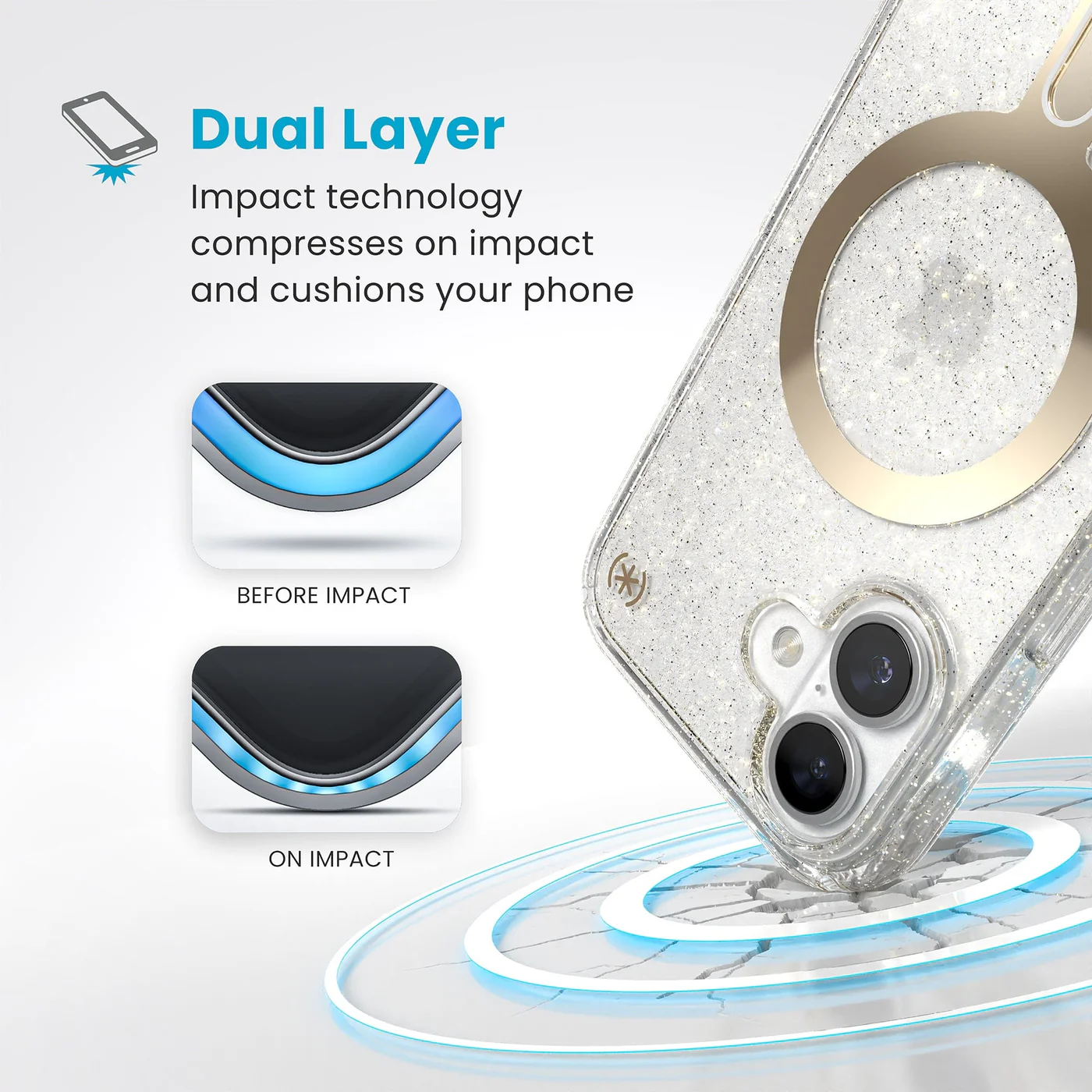 Our iconic clear protective case with a chic glow up—the addition of Lux glitter crystals that resist fading and scratching. Durable with 13-foot drop protection, functional with ClickLock™ Interlock no-slip technology, and is specifically built for all Apple MagSafe® chargers and accessories.