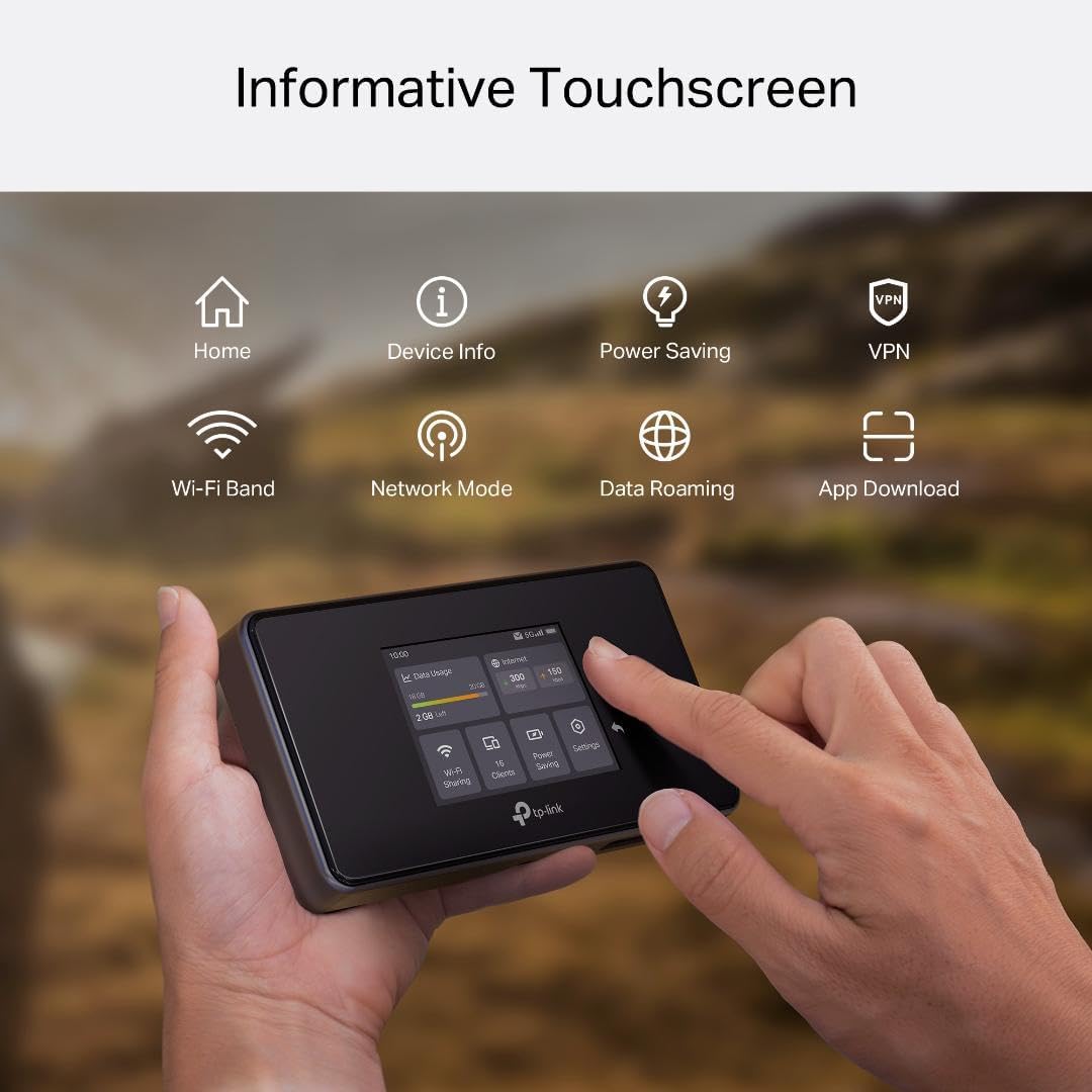 TP-Link | 5G Cellular Router WiFi 6E AXE3600, 5G/4G LTE, Tri-Band, Touchscreen, 2.5Gbps LAN/WAN Port - Black | M8550