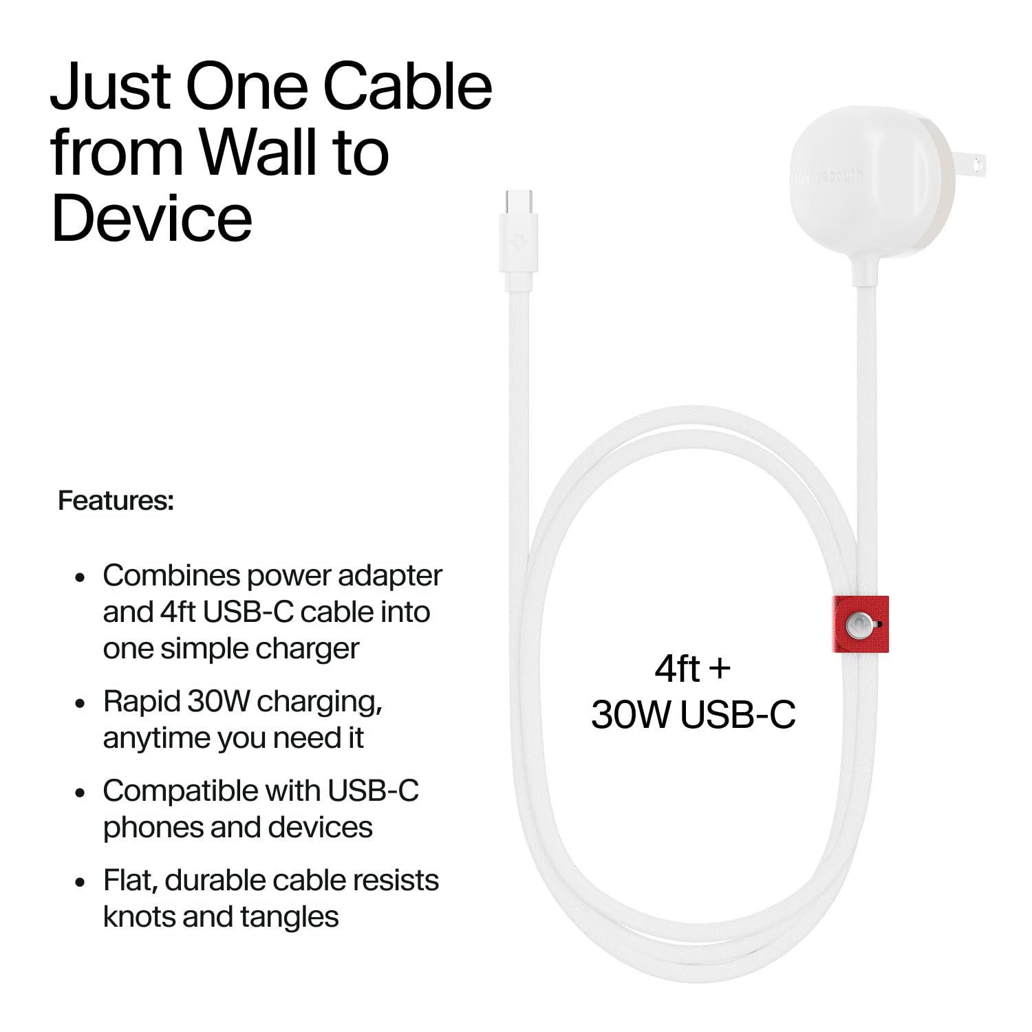 PowerCord simplifies charging from wall to device, combining a 30W fast charger and a USB-C cable into one cord. Just plug in and power up all USB-C compatible devices—no extra adapters required. PowerCord is simple, portable and ready to go.